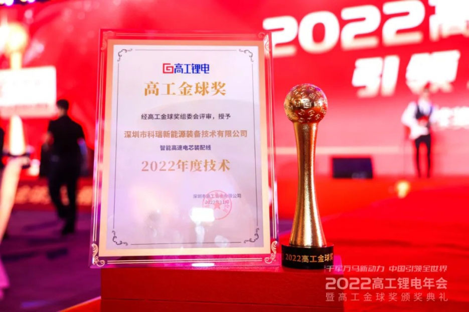 在16日晚的高工锂电金球奖颁奖典礼上,公司新能源凭借“智能高速电芯装配线”荣获“2022年度技术”大奖。
